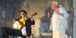 Ein Performance-Künstler begleitet uns den gesamten Abend mit seinen Interpretationen zu Italien,